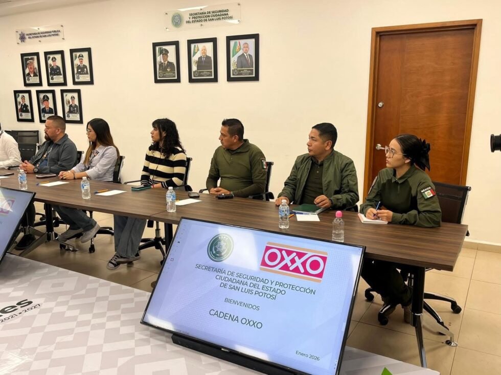 Con el objetivo de reforzar la protección del sector comercial en San Luis Potosí, el Secretario de Seguridad y Protección Ciudadana del Estado (SSPCE), Jesús Juárez Hernández, encabezó una mesa de trabajo con Adrián Guerrero Vázquez, representante de la cadena OXXO, en la que se analizaron los patrones delictivos y se fortalecieron las estrategias de prevención.